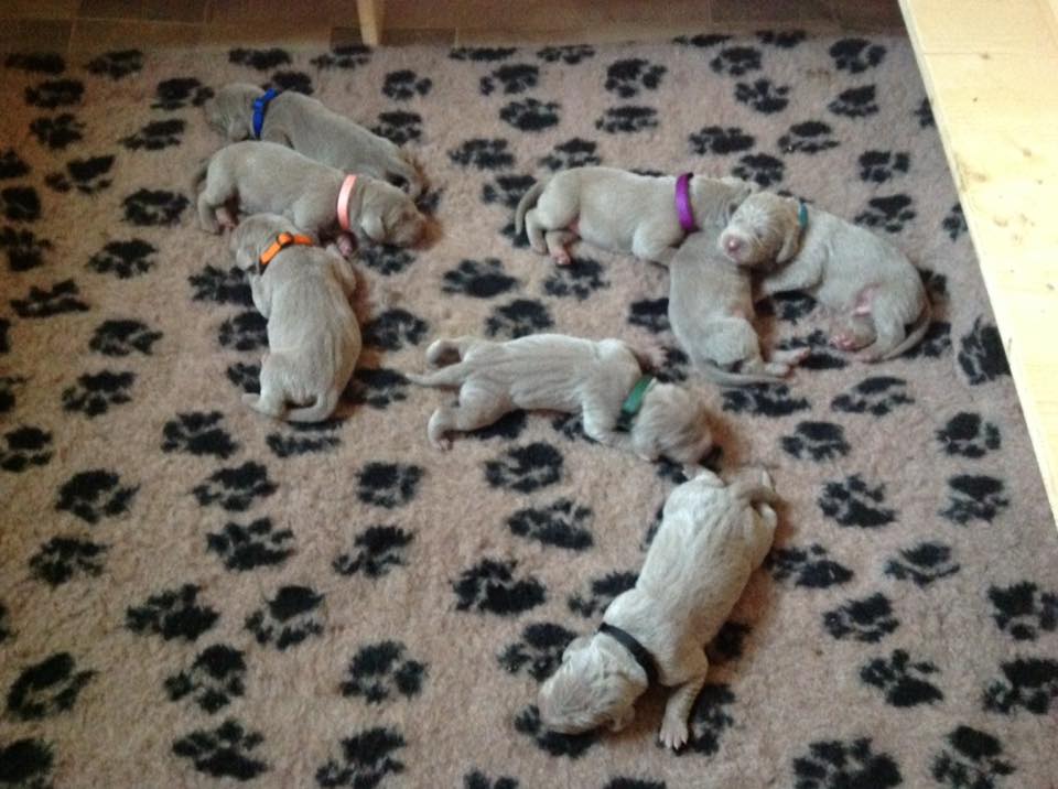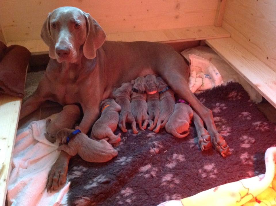 Očekávaný vrh "A" přišel na svět první březnový den.Celý porod probíhal bez komplikací a naše Grace byla moc statečná. Všechna štěňátka jsou zdravá,schopná sát mateřské mléko.Narodilo se 5 pejsků ♂ a 3 fenky ♀ .Porodní váhy byly mezi 400-500g,takže žádní drobečci :) Naše štěnda jsou stříbrošedé bez bílých znaků ♥
